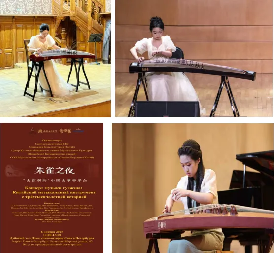 与此同时,艺术师范系青年骨干教师赵伊人老师同步绽放国际光彩。受邀赴俄罗斯圣彼得堡参加朱雀之夜——“古弦新韵”中国古筝音乐交流会,这场演出以音乐为桥,成为跨越语言的文化对话,将中国传统音乐底蕴展现得淋漓尽致,是“一带一路”背景下文化传递的生动实践。赵伊人老师功底深厚,大学期间多次作为音乐会特邀嘉宾。2025年斩获第十七届“古弦新韵”多弦民族器乐作曲、指挥、演奏国际比赛独奏组银奖、合奏组金奖;2024年作品《多种民族3D模拟乐器》获全国大学生创新创业大赛省级与国家级立项,同年拿下第四届环球“TFA未来艺术家”艺术展演陕西赛区声乐专业大学组金奖。她“技法传承与文化浸润并重”的教学模式,正是我校艺术师范教育的核心特色,也为职教老师出国交流、文化传递积累了宝贵经验。
